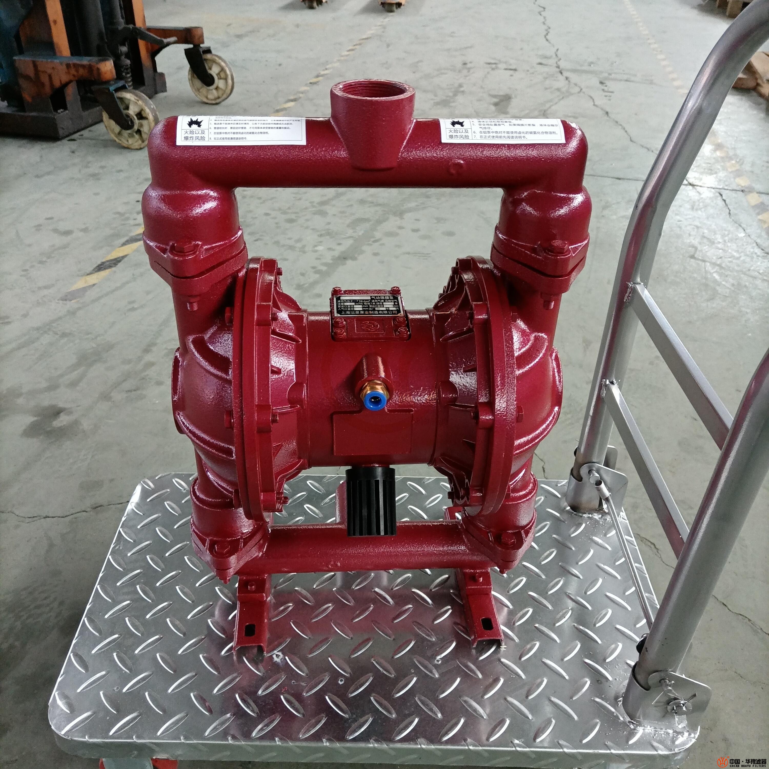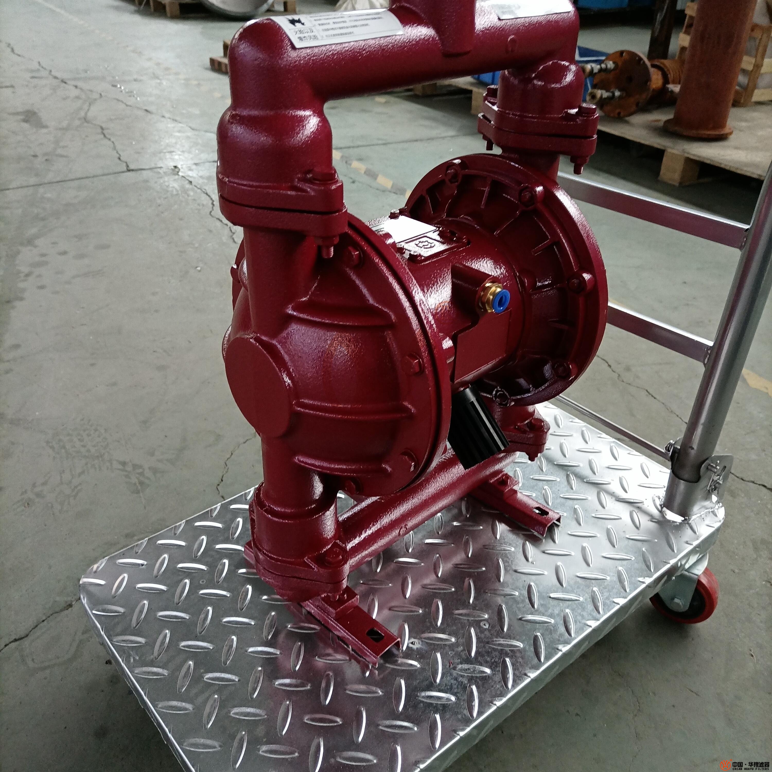 QBY-40型氣動隔膜泵是目前國內的一種采用壓縮空氣為動力源,通過氣閥往復運動分配空氣,帶動隔膜擠壓輸送介質的容積式泵,該泵集雜質泵、自吸泵、泥漿泵、屏蔽泵、潛水泵等輸送機械的優點。該系列泵具有結構美觀,良好的物理抗性等特點,對于各種腐蝕性液體、帶顆粒、高粘度、易揮發、易燃、易爆、劇毒的液體、陶瓷釉漿、果漿、膠水、油輪倉底油回收、臨時倒罐等液體均能予以抽光吸盡,尤其可以解決葉片式泵的跑、冒、滴、漏及不允許空轉等問題,該系列產品可利用普通干凈的工業氣或儀表氣,在0.1公斤的低壓下啟動,在正常輸送狀況下節約用氣量30%以上,是 的節能性泵種,具有良好的市場前景。